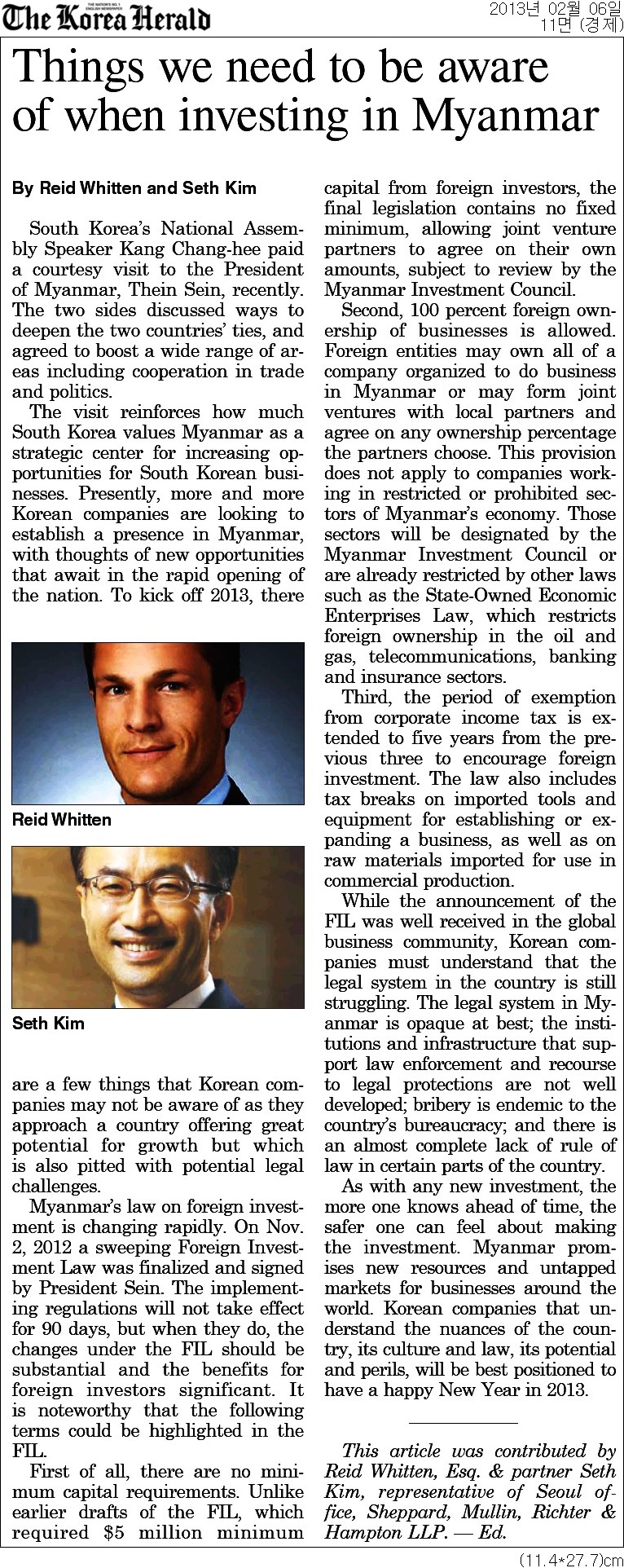 Since establishing a “foreign legal consultant office” in Seoul following the opening of the Korean legal market in 2012, our Seoul lawyers have worked seamlessly with our broader Korea Practice Team.  Although our Seoul lawyers are not allowed to practice Korean law, we coordinate with local counsel for non-Korean clients’ needs for Korean legal advice.