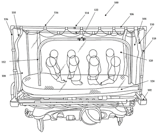 This patent is directed to a disposable, bio-secure enclosure designed to be attached to hospital stretchers and beds for isolating and transporting patients suspected of having an infectious or contagious disease. As shown in FIG. 1 of the patent, the enclosure can also include a number of gloved access points that allow practitioners to interact with the patient, while also allowing mobility for the patient to sit up and move their arms and legs.