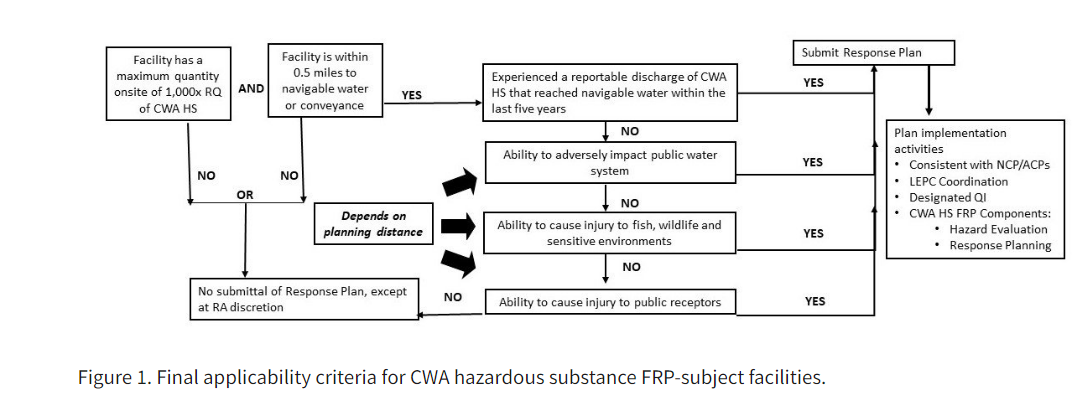 Based on the responses to the initial screening criteria, USEPA has created a flowchart to identify whether a Facility Response Plan is required.[3]